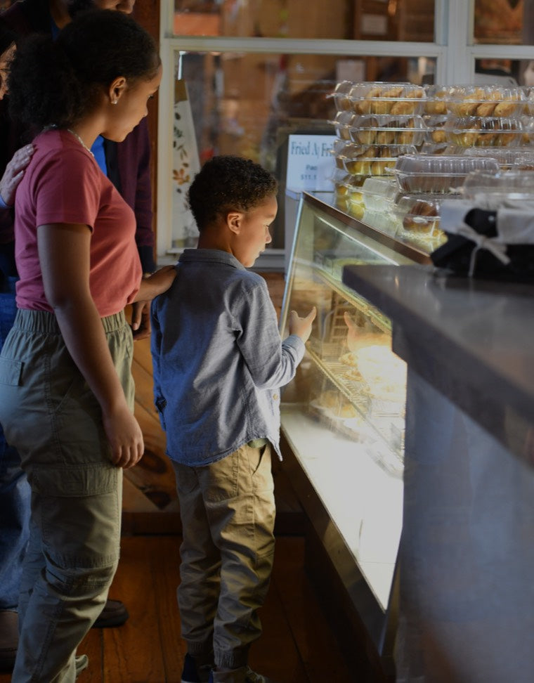 What began as a spot for visitors to sample the cider has grown to a perfect snack spot for 100 happy customers. Take a break from shopping to enjoy a glass of our own apple cider and taste the fried pies and baked goods made in our kitchen.