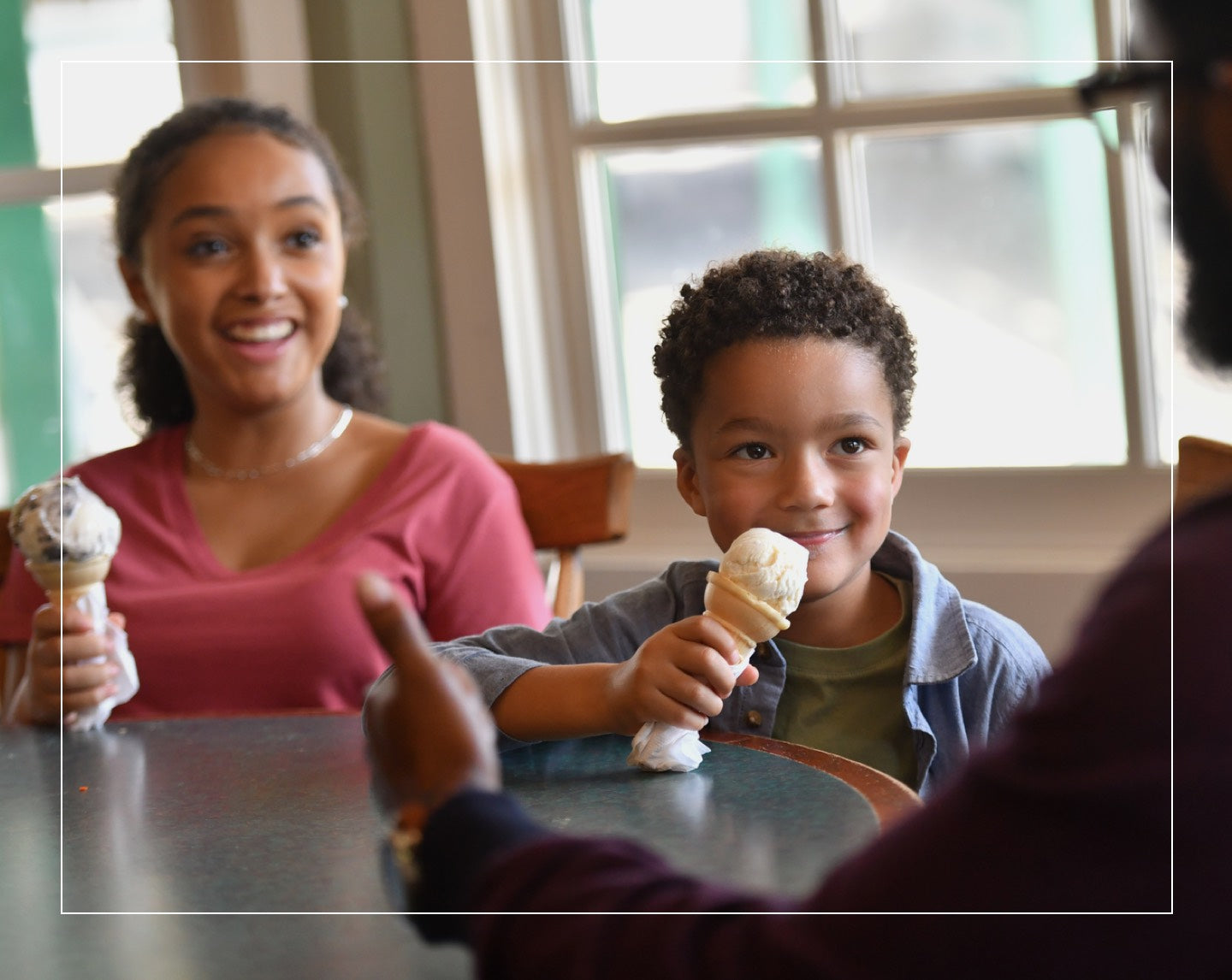 The Creamery continues the Apple Barn tradition of great food made right here on the farm. Indulge your taste buds—and your memories—in our old-time ice cream parlor with an antique soda fountain, or sit on the patio while the kids play outside. You can watch the ice cream being made right here, from the best ingredients we can find, and there are delicious breads and other baked goods from our kitchen to try.